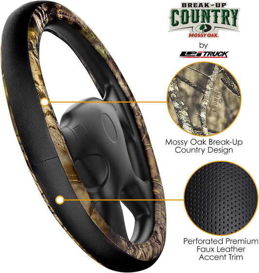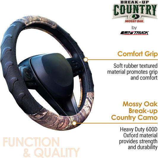Mossy Oak Steering Wheel Cover by LPI Truck; Heavy Duty 600D Oxford Material with Mossy Oak Break-up Country Camoflauge; Fits All Car, SUV, Mini-Van and Truck with Steering Wheel Size 14.5" to 15"