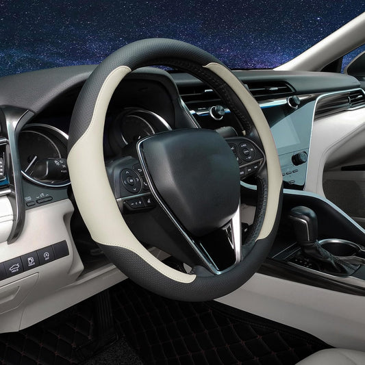 Auto Newer Breathable Steering Wheel Cover Suitable For Four Seasons,Anti-Slip Design,Odorless,Easy Carry Unviersal Fit for Truck SUV Sedans Vans,Interior Accessories Standard Size[14" 1/2-15"](Beige)