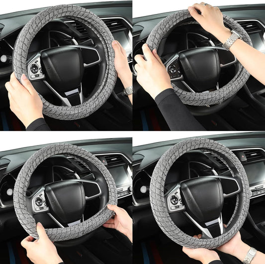 Auto Newer Breathable Steering Wheel Cover Suitable For Four Seasons,Anti-Slip Design,Odorless,Easy Carry ,Unviersal Fit for Truck SUV Sedans Vans,Interior Accessories Standard Size[14" 1/2-15"](Grey)