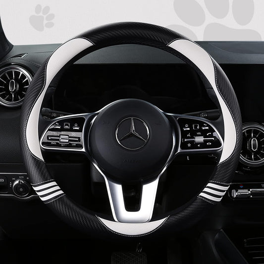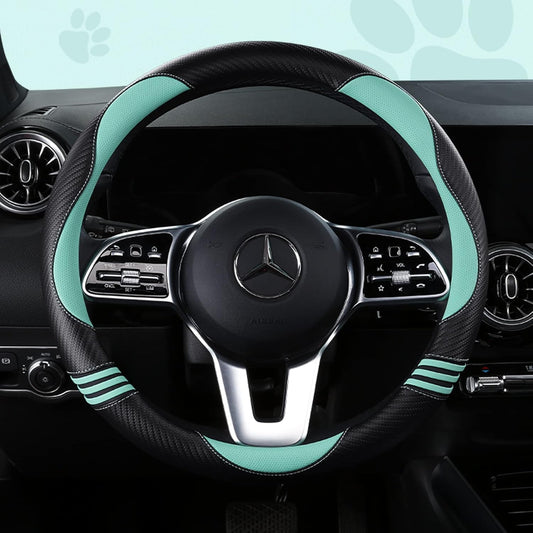 PIC AUTO Steering Wheel Cover, Mint Piping Leather, Sports Carbon Fiber and Super Breathable Leather, Universal 14.5-15.5 Inch Anti-Slip Steering Wheels Accessories for Men & Women