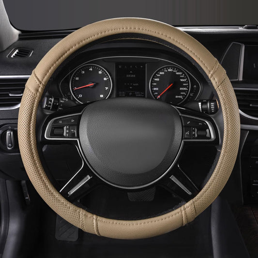 PIC AUTO Steering Wheel Cover, Silk Grain Leather Car Steering Wheel Protector, Comfortable Grip, Universal 14.5-15.5 Inch Anti-Slip Steering Wheels Accessories for Men & Women (Beige)