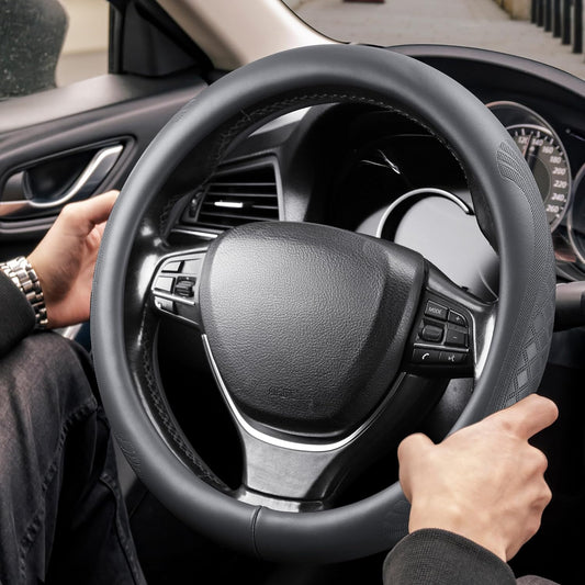PIC AUTO Steering Wheel Cover, Silk Grain Leather Car Steering Wheel Protector, Comfortable Grip, Universal 14.5-15.5 Inch Anti-Slip Steering Wheels Accessories for Men & Women (Gray)