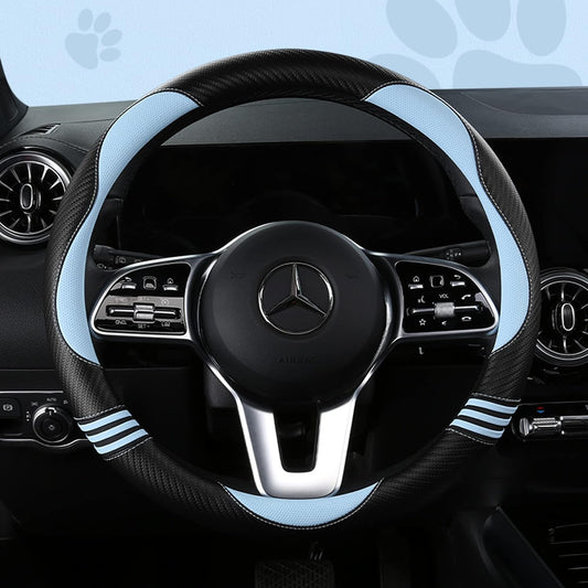 Car Steering Wheel Covers for Women Padded Carbon Fiber PU Leather Cute Auto Interior Accessories for Vehicle, Sedan, Universal, Anti Slip, Blue, Standard Size 14.5-15"(37-38cm)