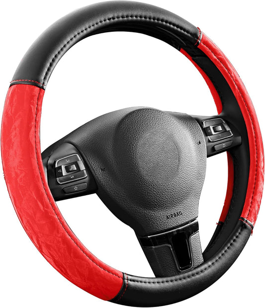 Leather - Car Steering Wheel Cover 15 inch Universal Fit Microfiber Steering Wheel Cover Anti-Slip, Soft, Breathable, Full Surround Car Wheel Cover (Red)