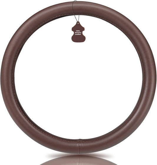 Haokay Heavy Duty Pure Cowhide Steering Wheel Cover, Genuine Leather Steering Cover Brown Leather Steering Wheel Cover with 15 Inches Universal Fit (Brown-1)