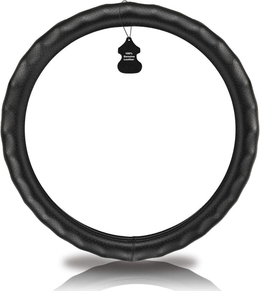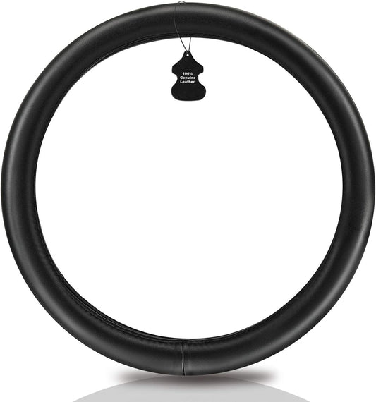 Haokay Heavy Duty Pure Cowhide Steering Wheel Cover, Genuine Leather Steering Cover with 15 Inches Universal Fit