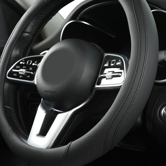 PIC AUTO Gel Particles Steering Wheel Cover, Black Luxury Leather Car Steering Wheel Protector, Universal Fit 14.5"-15.5" Anti-Slip Car Interior Accessories for Girls & Women