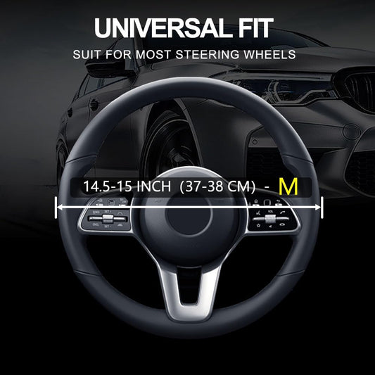 Leather Car Steering Wheel Cover, Non-Slip Car Wheel Cover Protector Breathable Microfiber Leather Universal Fit for Most Cars(Black)