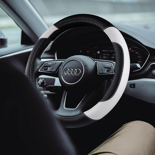 Leather Car Steering Wheel Cover, Non-Slip Car Wheel Cover Protector Breathable Microfiber Leather Universal Fit for Most Cars(White)