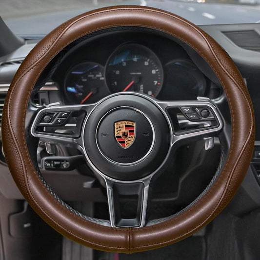 Leather Car Steering Wheel Cover, Non-Slip Car Wheel Cover Protector Breathable Microfiber Leather Universal Fit for Most Cars(Brown)