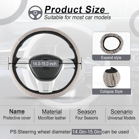 alpmosn Elastic Stretch Steering Wheel Cover, Breathable Microfiber Ice Silk, Anti-Slip, Odorless, Easy Carry, Universal Interior Accessories Steering Wheel Cover for Women & Men(Beige)