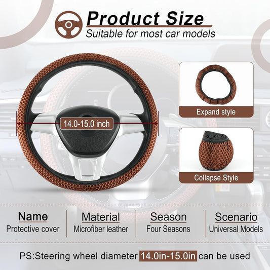 alpmosn Elastic Stretch Steering Wheel Cover, Breathable Microfiber Ice Silk, Anti-Slip, Easy Carry, Universal Interior Accessories Steering Wheel Cover for Women & Men (Brown-Black)