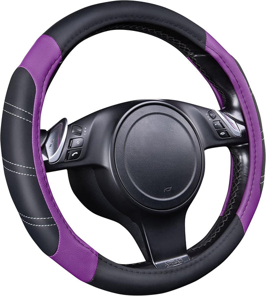 CAR PASS Rhombus Leather Universal Steering Wheel Cover, Fit for Suvs,Trucks,Cars,Sedans,Vans (Black&Dark Purple)