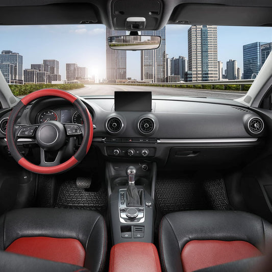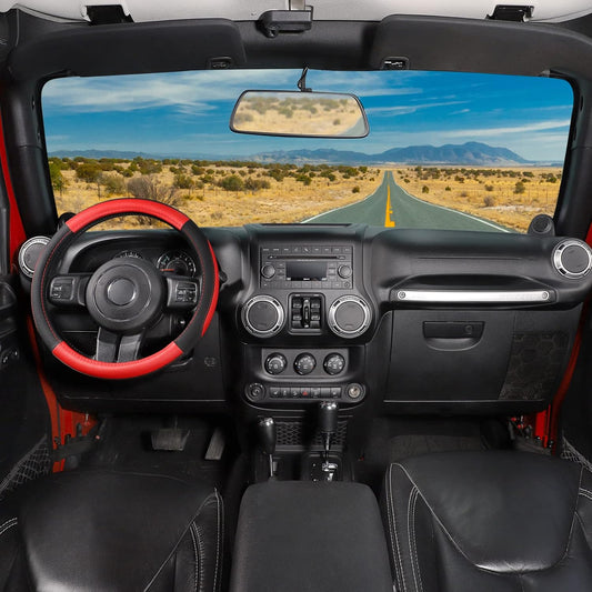 【2025 Model】 Breathable Soft Leather Car Steering Wheel Cover for Men Women, Non-Slip, Comfortable,Universal 15 inches Steering Wheels, Red