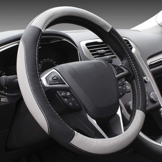 SEG Direct Black and Gray Microfiber Auto Car Steering Wheel Cover Universal 15 inch