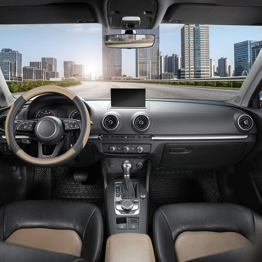 【2025 Model】 Breathable Soft Leather Car Steering Wheel Cover for Men Women, Non-Slip, Comfortable,Universal 15 inches Steering Wheels, Beige