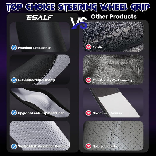 Soft Leather Steering Wheel Cover with Breathable Design and Anti-Slip Grip, Fully Compatible with Tesla, Toyota, Honda, Nissan 14.2-14.96 inch Round Steering Wheel(Sedans and SUVs)