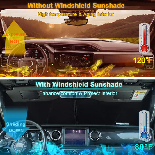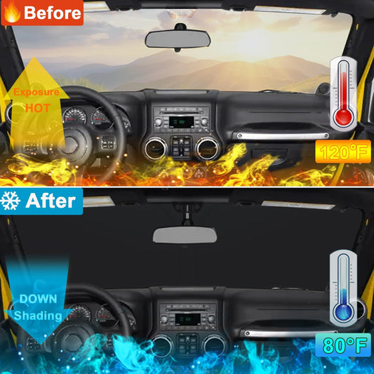 Windshield Sun Shade for Jeep Wrangler JK 2007-2018, Foldable Heat Shield with UV Protection, Custom Fit for 2/4 Door Models, Car Window Visor Accessories