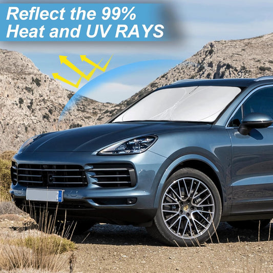 Custom Fit Cayenne Windshield Sunshade for 2019-2023 2024 2025 Upgrade Porsche Cayenne Front Window Sun Shades Shield Cover for Windshield Foldable 210T Sun Visor Protector Blocks UV Ray Accessories