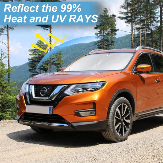 Foldable Windshield Sun Shades for 2021-2023 Nissan Frontier, Sunshade Cover Protector Custom Fit Nissan Xterra Armada Reflector Sun Visor Front Window Shade Cool Car Accessories-(61" x 33.5")