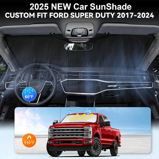 for Ford F250 F350 F450 F550 2017-2024 2025 Super Duty Crew Cab Windshield Sun Shade, Foldable Front Windows Sunshades Custom Fit F 250 Folding Sun Visor Shield Blocks UV Car Accessories