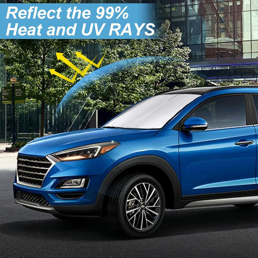 Custom Fit Tucson Windshield Sunshade for Hyundai Tucson 2016 2017 2018 2019 2020 2021 Front Window Shades Cover for Windshield Sun Visor Protector 210T Reflector Blocks UV Rays Cooler Car Accessories