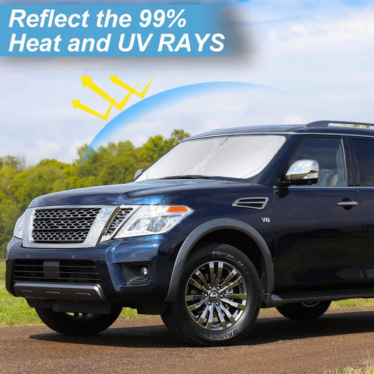 Custom Fit Armada Windshield Sunshade for 2017-2024 2025 Nissan Armada Accessories Front Window Car Shades Shield Cover for Windshield 210T Silver Coating Sun Visor Protector Reflector Blocks UV