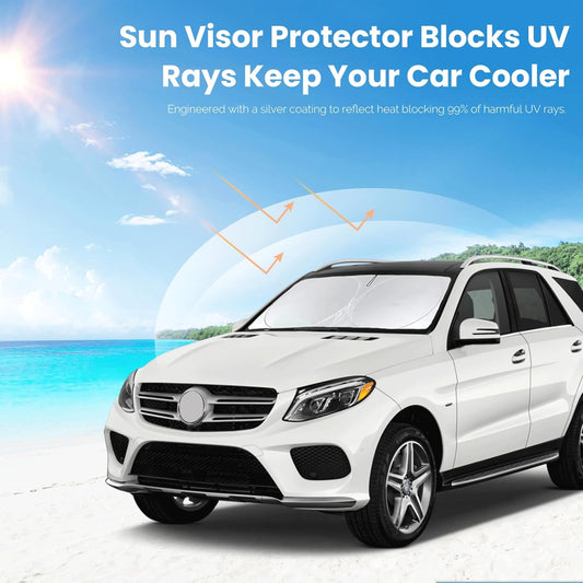 Windshield Sun Shade Compatible with 2024 2023 2022 2021 2020 2019 2018 Mazda CX5 CX-5, CX-3, CX-9,Front Window Sunshades 210T Reflective Polyester Sun Visor Cool Car Accessories