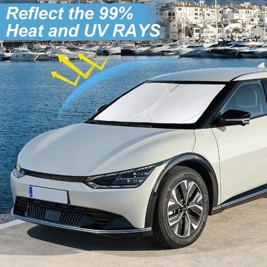 Custom Fit Kia EV6 Windshield Sunshade for 2022 2023 2024 2025 EV6 for Kia Front Window Shades Cover for Windshield Sun Visor Protector 210T Reflector Blocks UV Rays Cooler Car Accessories