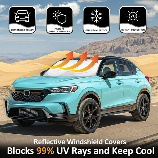 Custom Fit HR-V Windshield Sunshade for 2021 2022 2023 2024 2025 2026 HR-V (LX Sport EX EX-L) Accessories Front Window Cover for Windshield Sun Visor Protector 210T Reflective Blocks UV Keep Cool