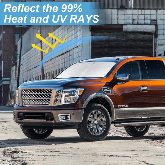 Custom Fit Titan Windshield Sunshade for 2020-2023 2024 2025 Upgrade Nissan Titan Front Window Sun Shades Shield Cover for Windshield Foldable 210T Sun Visor Protector Blocks UV Ray Car Accessories