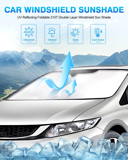 KUST Windshield Sun Shade for 2017-2024 Jeep Compass Accessories Window Sunshade Foldable Window Sun Visor Cover Blocks UV Rays Keep Your Car Cooler