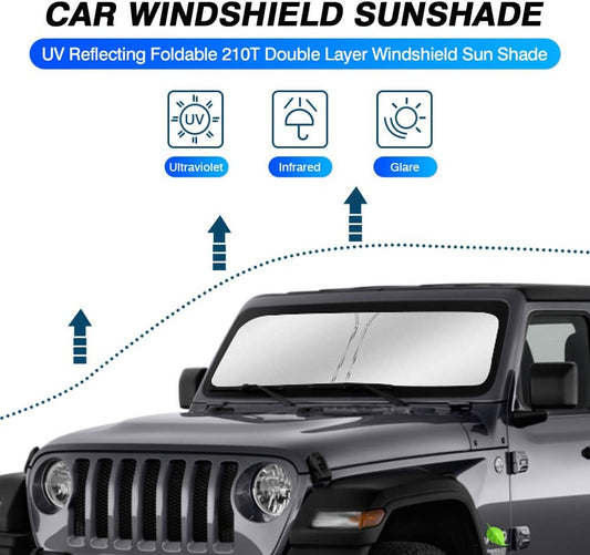 KUST Windshield Sun Shade for 2018-2023 Jeep Wrangler JL & 2/4 Door 4XE &2020-2023 Jeep Gladiator JT Front Window Sun Shade Sun Visor Protector Foldable Blocks UV Rays Keep Your Car Cool
