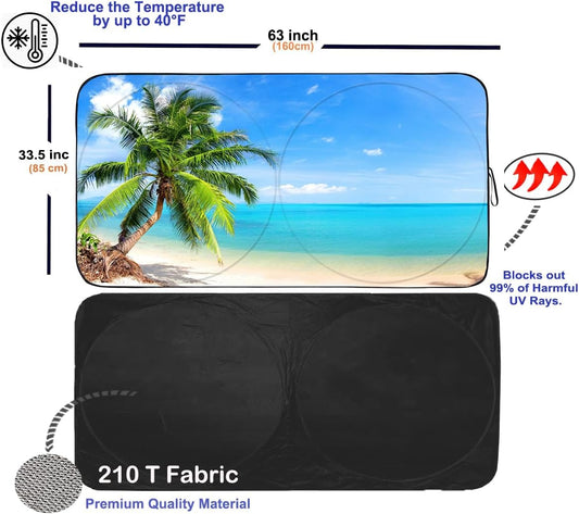 Gven Sunshade for Car Windshield with Tropical Palm Tree Design- UV Protection& Heat Blocking Sunshade for Cars Sedan SUV Truck| Keep Car Cool in Summer Beach Vacation Style (Palm Tree, L)