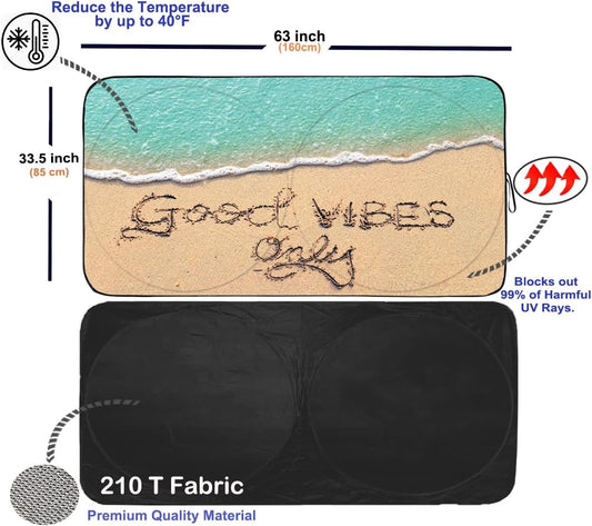 Gven Windshield Sun Shade, Car Front Window Shades Cute Sunshade Windshield Cover Sun Visor Shield Block Automotive Interior Protector Blocks UV Rays for Car Pickup Truck SUV (Good Vibes, L)