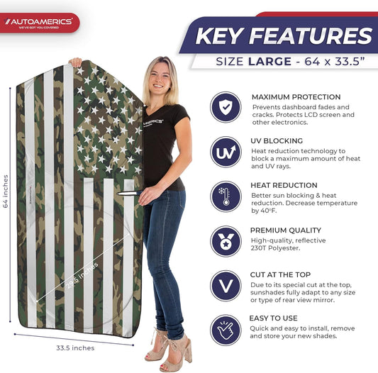 Autoamerics 1-Piece Windshield Sun Shade ERDL Camo American Flag USA Design - Foldable Car Front Window Sunshade for Most Sedans SUV Truck - Blocks Max UV Rays and Keeps Your Vehicle Cool - Large