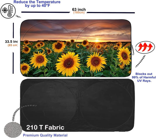 Gven Windshield Sun Shade for Car, Foldable Sunflower Vehicle Sun Visor Shade for Car Windshield Sunshade Heat Reduction Blocks UV Rays for Pickup Truck SUV (Sunflower, S)