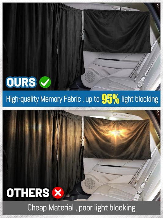 Set of 3 Car Privacy Curtains - 95% Light Blocking Fabric Rear Seat & Side Windows Divider Curtain Baby Shades, Wide Sedan SUV Sunshade Screen Covers for Travel Camping Nap Sleeping