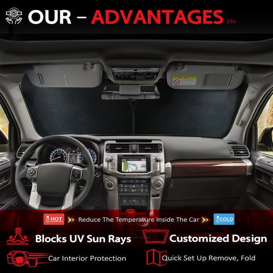 KAYZT Windshield Sun Shade for Toyota 4Runner 2010-2024 4-Runner Foldable Sunshade SUV Front Window Custom Fit Accessories
