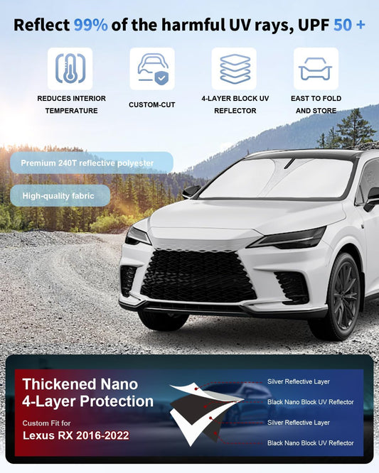 Sun Shade for RX350 Windshield Sunshade Front Window Shield Custom Fit for Lexus RX 2016-2022 Accessories Sun Visor for for Lexus RX 2016-2022 Protector Foldable Blocks UV Rays Heat