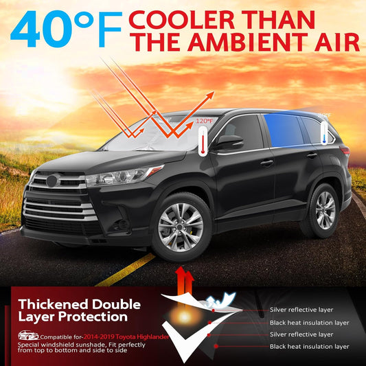 KAYZT Windshield Sun Shade for 2014-2019 Toyota Highlander SUV Foldable Sunshade Front Window Custom Fit Car Accessories