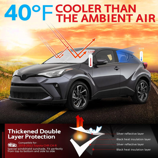 KAYZT Windshield Sun Shade for 2018-2023 Toyota CHR CH-R SUV Foldable Sunshade Front Window Custom Fit Car Accessories