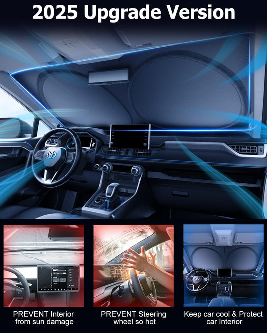 [2025 Upgrade] DMJN Windshield Sun Shade Car, [100% Sun Bolck & UV Reflective] Keep Car Cool & Interior Protection Sunshade, Flexible & Durable Sun Visor Universal Fit Large