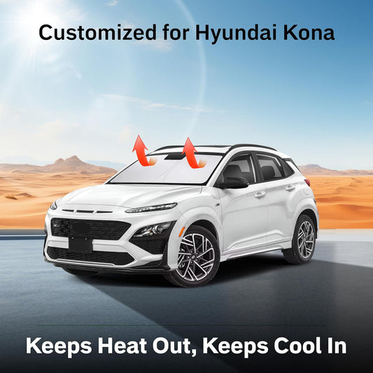 for Hyundai Kona 2018-2025 Windshield Sunshade - EcoNour 240T Polyester Material Cars Sun Visor Reflector Blocks UV Rays - Foldable Sunshade Interior Protection Hyundai Kona Accessories