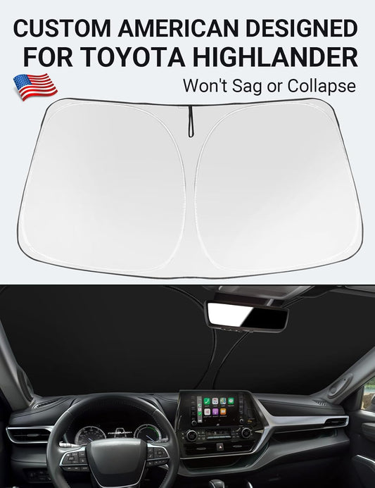 Proadsy for Toyota Highlander 2020-2024 2025 Windshield Sun Shade 4-Layer Foldable Highlander L LE XLE Limited Platinum Front Sunshade Protector Sun Visor Blocks UV Rays Keep Car Cooler
