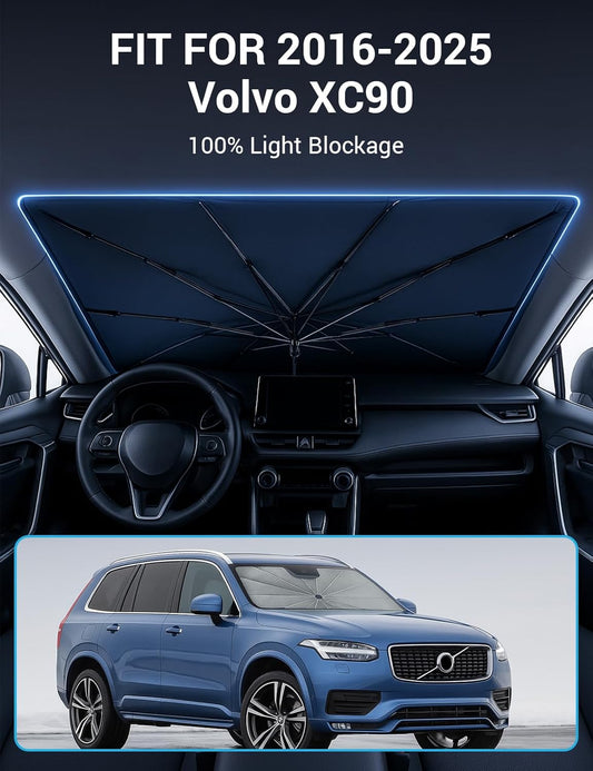 Proadsy Windshield Sun Shade Umbrella for Volvo XC90 2016-2025 2026 Foldable Car Umbrella Sunshade with Soft TPU Handle Spring Structure Crystal Cooling Material Protect Car from Rays & Heat