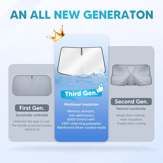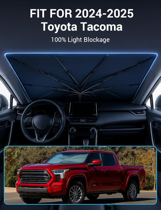 Proadsy Windshield Sun Shade Umbrella for Toyota Tacoma 2024-2025 2026 Foldable Car Umbrella Sunshade with Soft TPU Handle Spring Structure Crystal Cooling Material Protect Car from Rays & Heat