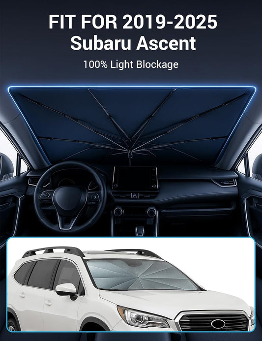 Proadsy Windshield Sun Shade Umbrella for Subaru Ascent 2019-2025 2026 Foldable Car Umbrella Sunshade with Soft TPU Handle Spring Structure Crystal Cooling Material Protect Car from Rays & Heat