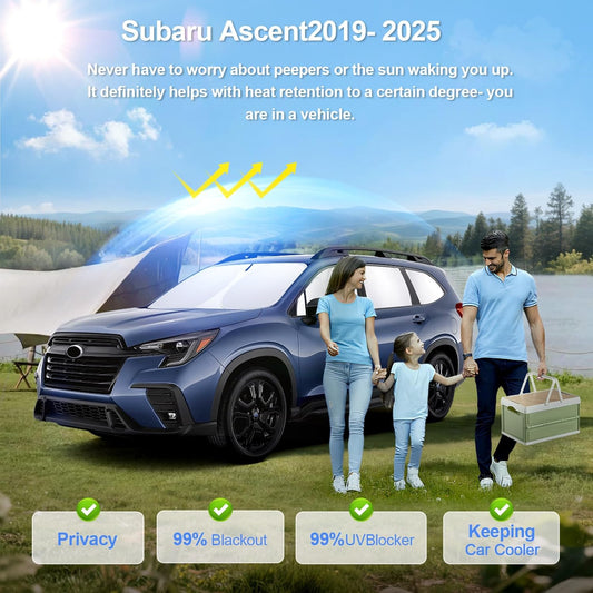 8pcs Car Window Shades for Subaru Ascent 2019-2024 2025 Accessories,Windshield Side Rear Full Sunshade,Sun Visor UV Blocking, Privacy Protection and Blackout for Camping Outdoor