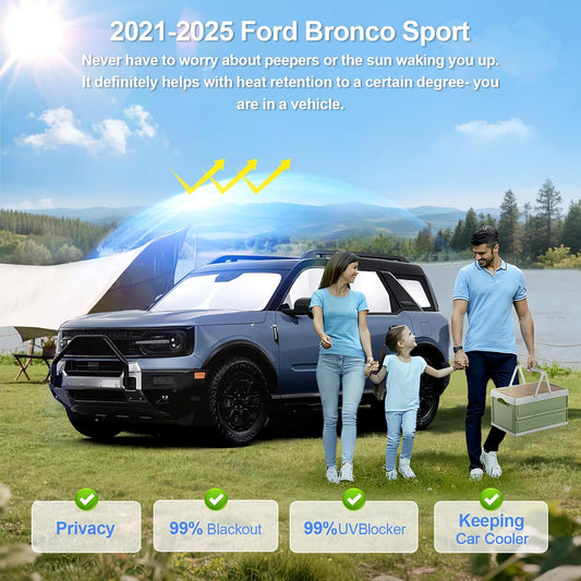 8pcs Car Window Shades for Ford Bronco Sport 2021-2024 2025 Accessories,Windshield Side Rear Full Sunshade,Sun Visor UV Blocking, Privacy Protection and Blackout for Camping Outdoor